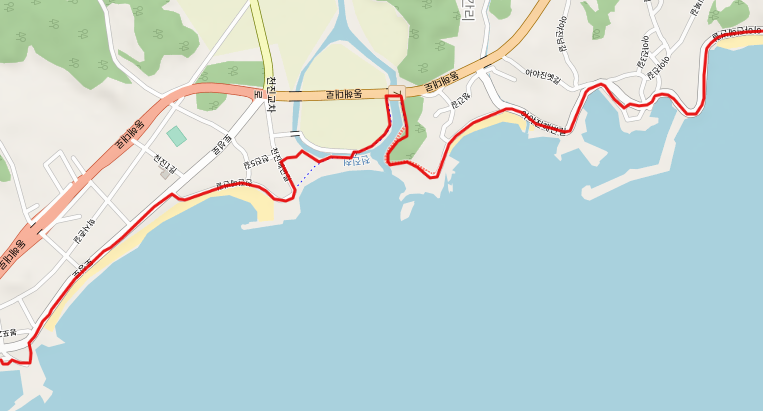 청간정 둘레길을 지나 청간 해변으로 이동한다.