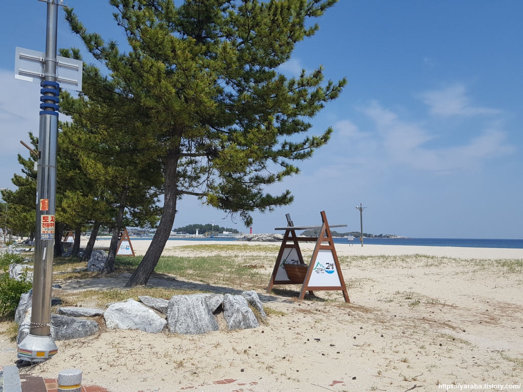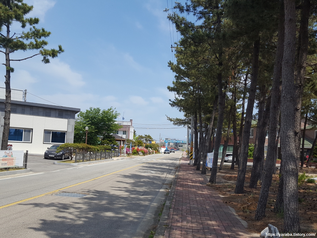 넓은 주차장을 가진 오호항을 지난다. 근처에 송지호가 있어서 그런지, 죽왕면 면소재지라 그런지 식당도, 가게도 숙박시설도 많다. 최근에는 오호항 뒤편 언덕에 새롭게 등대를 설치했다고 한다.