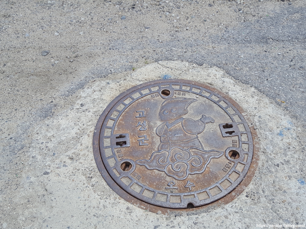 고성군의 오수관 뚜껑에도 캐릭터를 새겨 놓았다. 구름 타고 있는 금강 누리? 맞을지 모르겠다.