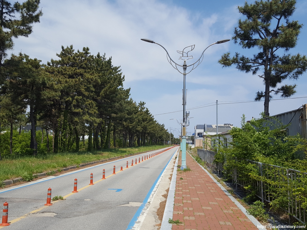 봉수대 오토 캠핑장과 7번 국도 사이의 도로를 따라서 오호리 길을 걷는다. 길의 이름이 심층수길인데 길이름은 오호항을 지나 송지호로 가는 길에 있는 강원 심층수 공장 때문일 것이다.