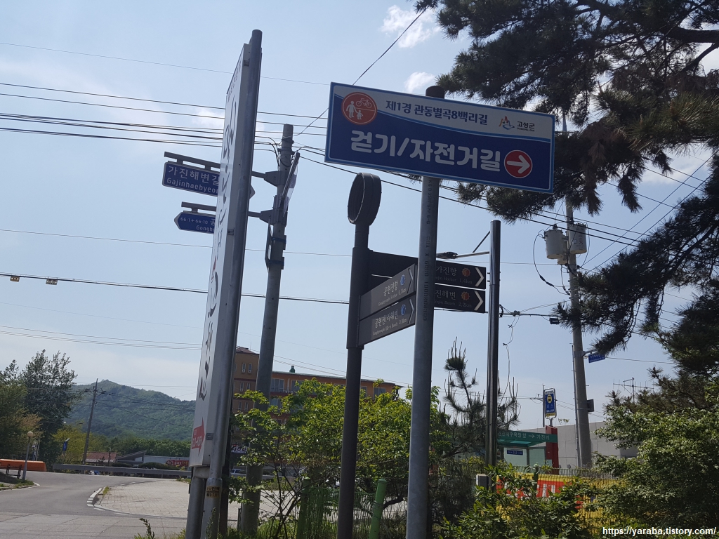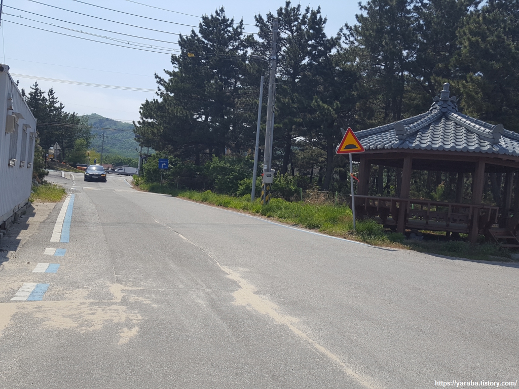 스탬프함에서 도장을 꺼내 찍으니 여정이 끝났다는 생각보다 다음 버스 시간까지 1시간이 넘게 남았는데 어떻게 해야 할까? 하는 생각으로 머리도 발걸음도 마음도 종잡을 수 없다. 늘 그렇듯 여행은 예상할 수 없는 상황이 벌어진다. 일단 가진리에 있는 편의점까지 이동했다. 몸도 무거운데 태양은 또 얼마나 뜨거운지, 옆지기도 일단 쉬어가자고 한다. 편의점에서 음료수 두 개를 구입해서 편의점 앞 의자에 앉아 일단 급한 갈증부터 해결했다. 히칭하이킹이라도 하고 싶지만 차가 많이 다니지 않는 길이라 그것도 한계가 있었다.