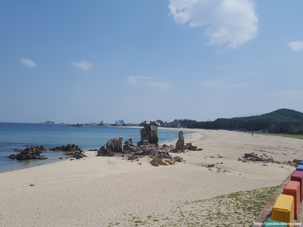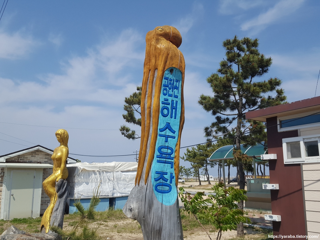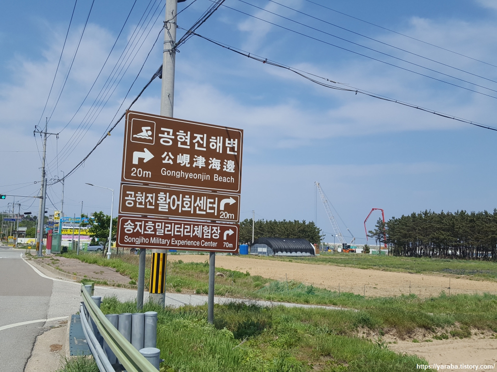 2014년에 공현진 개그 테마 해수욕장을 조성하려는 시도가 있었다고 하는데 재미있는 조형물들이 서있다. 사람들이 억지웃음을 짜내는 것보다 이런 조형물이 낫다는 순간의 생각도 해본다. 재미있는 것은 우리가 지나온 길에 희한하게 유명 여배우들의 이름이 들어가 있지? 하는 생각이다. 획 하나의 차이가 있기는 하지만 송지호는 송지효, 공현진은 공효진 배우 이름과 닮았다. 초등학생 같은 우스개 소리가 머릿속을 계속 맴돈다.