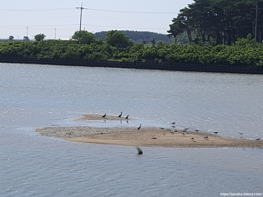 북천을 건넌 다음에는 다시 해변 방향으로 이동한다. 북천 모래톱에서는 물새들이 휴식을 취하고 있다. 가마우지와 갈매기는 먹이를 두고 싸우기도 한다는데 서로 다른 종이 섞여서 평화로운 휴식을 취하고 있다. 그렇지만, 저 중에서 한 마리가 먹이를 찾기라도 하면 같은 종이라도 그것을 빼앗으려고 달려들지도 모를 일이다. 생각해 보면 사람이나 새나 수준이 오십 보 백보다.