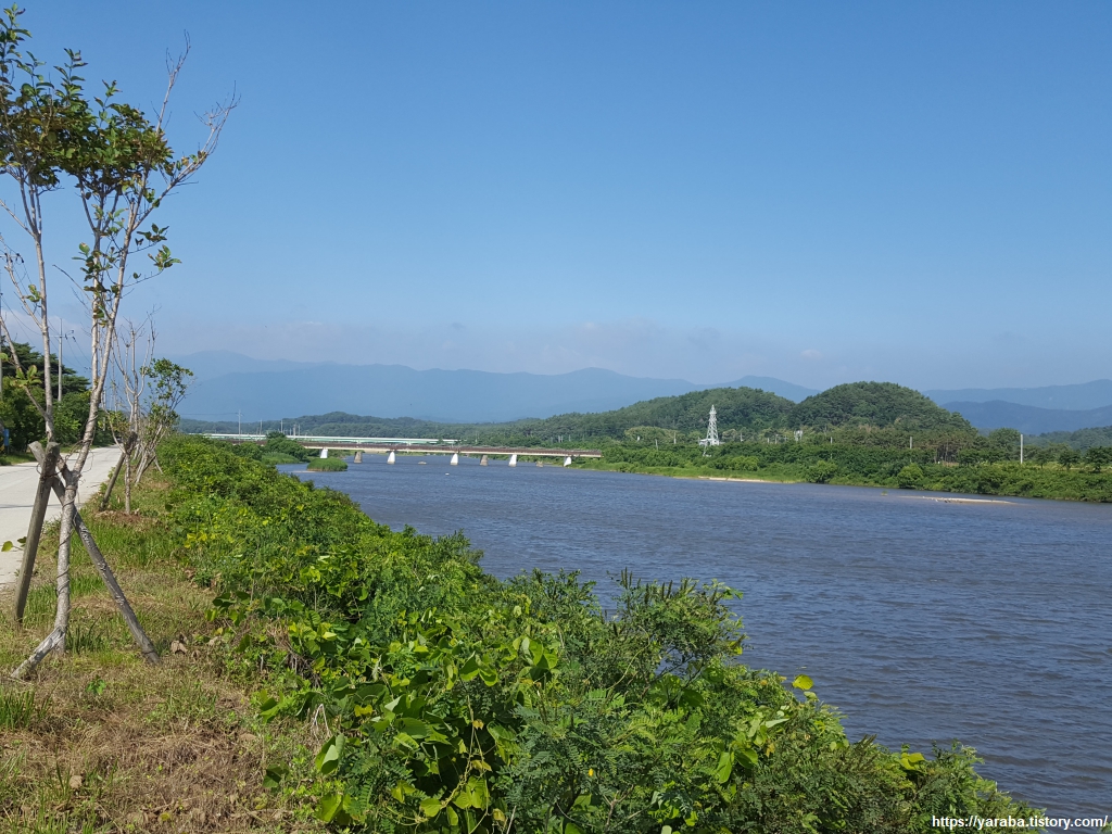 북천변 길을 따라 내륙 방향으로 이동하면 멀리 북천 철교도 보이기 시작한다.
