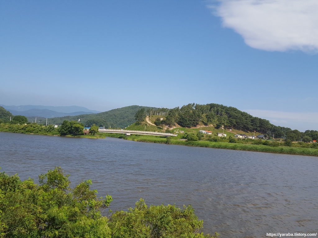 건너편 우리가 북천을 건너서 가야 할 송죽리가 한눈에 들어온다.