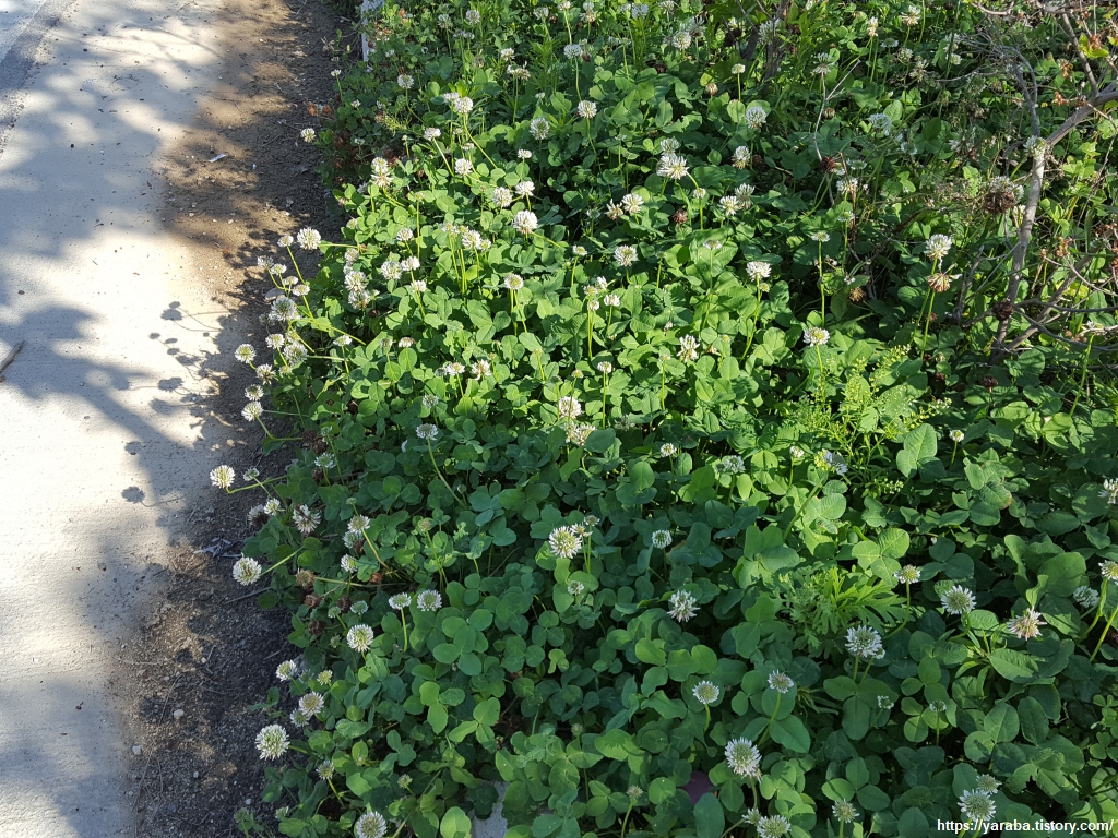 오래간만에 보는 클로버도 반갑다. 어린 시절 토끼를 키우며 열심히 뜯어다 주며 토끼를 키웠는데 어느 날 학교에 다녀오니 토끼 가죽만 빨랫줄에 걸려있고 토끼는 온데간데없었다. 아버지가 동네 아저씨들과 해치운 것이었다. 토끼풀이 없는 겨울에는 김장무로 버텨 내며 키운 토끼였었다. 때로는 네 잎 클로버를 찾겠다고 눈에 불을 켰던 적도 있었다. 콩과 식물이니 어디서든지 잘 크고 초식 동물들에게는 딱인 식물이다.