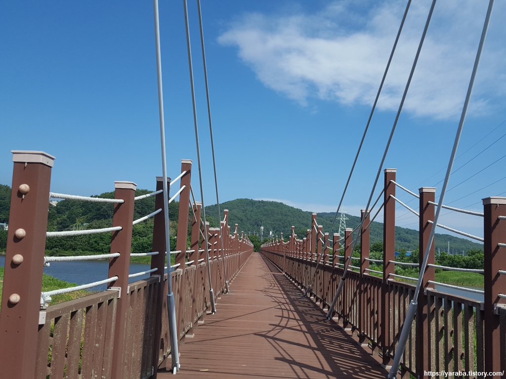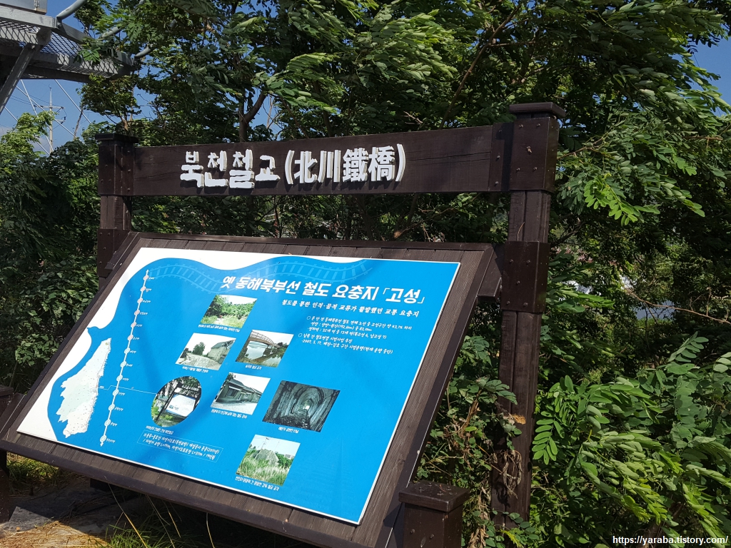 북천 철교는 양양에서 원산까지 이어지는 옛 동해북부선의 철교로 지금은 폐선 상태도 평화 누리길이라는 이름으로 리모델링하여 사람이 오갈 수 있도록 해놓았다.