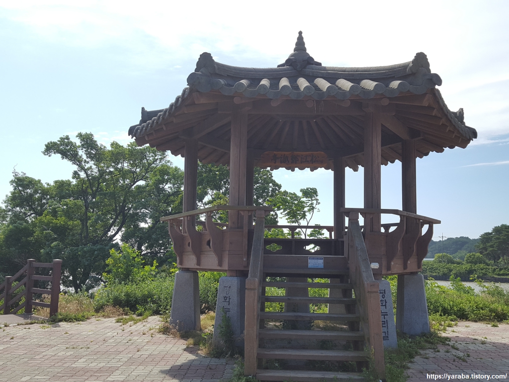 북천 끝자락에서 송죽리로 넘어가는 지점에는 쉼터가 있었다. 때마침 속에서 신호가 와서 화장실을 가야 했는데 컨테이너보다 작은 단순한 화장실이었지만 아주 깔끔했다. 이런 곳에 있는 화장실 수준을 보면 진짜 우리나라가 잘 사는 나라가 되었구나 하는 생각을 하게 된다. 많은 사람들이 방문하고 싶어 하는 파리조차도 공중 화장실을 찾기 어렵고, 깨끗하지도 않은데 그에 비하면 우리나라 몇 단계 위다.