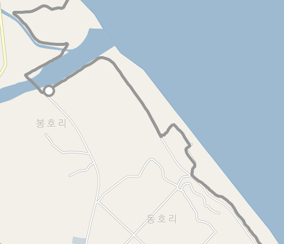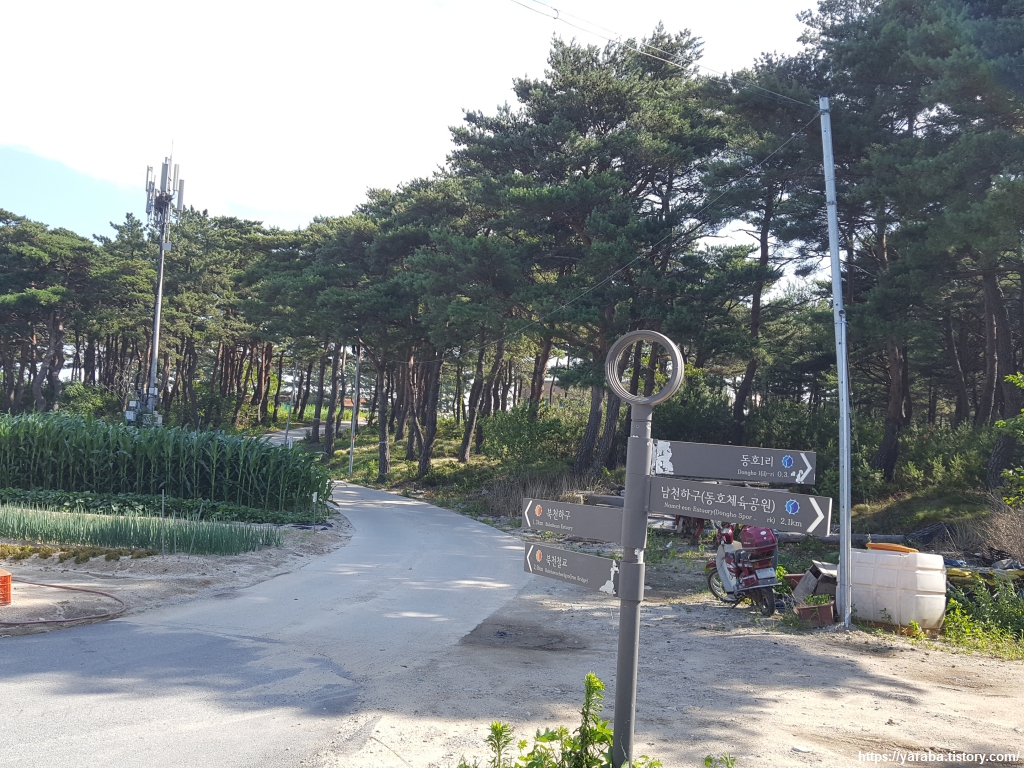 고성의 남천을 건너 동호리 해변에 도착한 해파랑길 48코스는 동호리와 봉호리를 지나 북천을 건너 송죽리로 넘어간다.