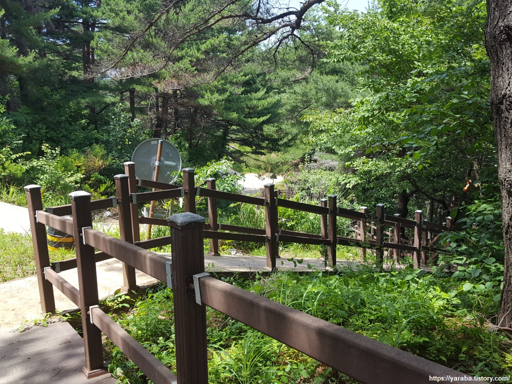 김일성 별장으로 향하는 숲길은 천천히 걸으며 산림욕 하기에 딱 좋은 길이다. 산 아래에서 만날 땡볕을 생각하면 조금 더 머물고 싶은 공간이다.