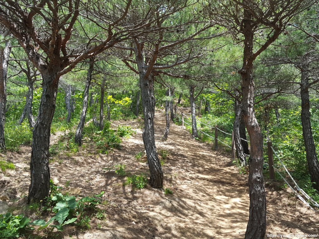 소나무 키가 작았다면 차마 산림욕장이라 이름 붙이기 어려웠겠지만, 쭉쭉 뻗은 소나무 숲과 강렬한 태양이 솔잎에 닿으며 풍기는 솔향기는 소나무 숲 산림욕장이라 하기 충분하다.