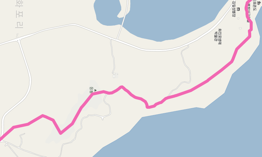 응봉을 내려오면 화진포 주차장 인근과 얼마 전에 지나왔던 화진포 해맞이교 인근으로 이어지는 작은 도로를 만나지만 군용 도로로 일반 차량은 들어올 수 없다. 해파랑길은 도로를 가로질러 직진한다.
