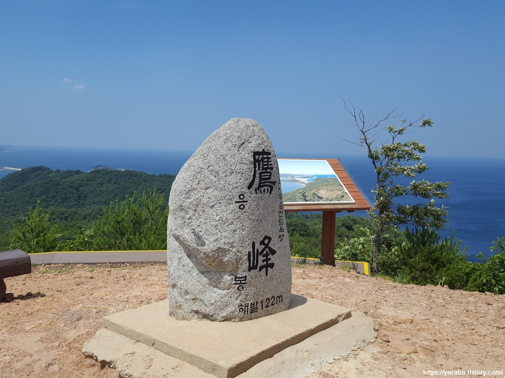 드디어 응봉(122m)에 도착했다. 화진포 소나무 숲 산림욕장의 핵심 장소다. 해발 고도는 그리 높지 않지만 가파른 편이라 동네 뒷산 생각하면 조금 힘들 수 있다. 그렇지만, 일단 올라오면 모든 수고를 보상해 주는 그런 뷰를 가진 곳이다. 사람들이 많아서 인증숏 하나 남기기도 어려울 수 있다. 편한 일상복 차림의 관광객들이 많았다.
