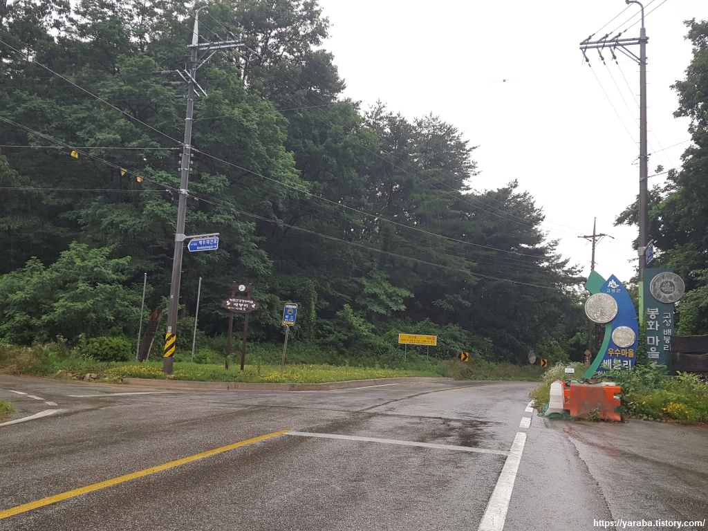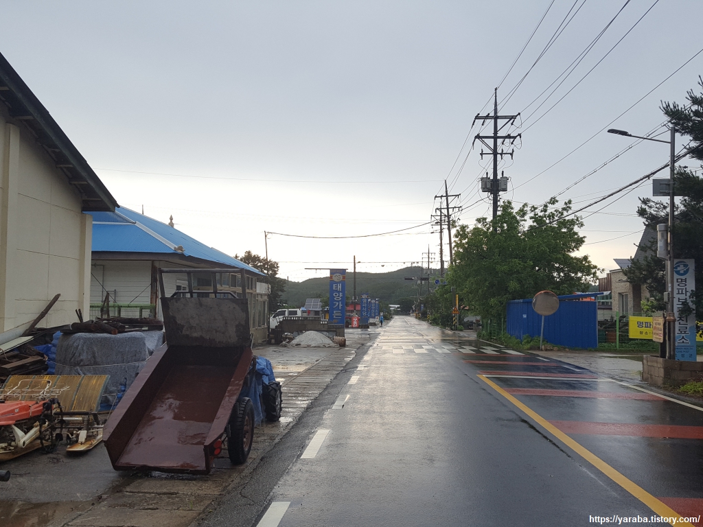 제진리 방향으로 명파리 마을길을 걷는다. 길을 끝낼 때쯤 되니 굵었던 빗줄기도 조금씩 잦아든다.