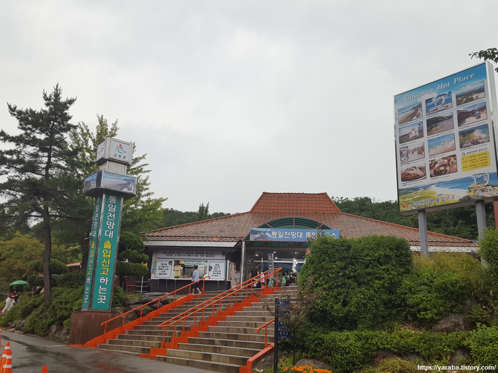 드디어 통일 전망대에 도착했다. 엄밀하게 말하면 통일 전망대가 아니라 통일 전망대 출입 신고소이다. 통일 전망대는 10km를 더 가야 한다. 출입 신고소는 비가 내리고 있음에도 통일 전망대로 가려는 사람들로 북적였다. 교육장으로 모이라는 방송도 울려 퍼지고 있었다. 코로나로 중단되었던 안보 교육이 다시 시작된 모양이다.