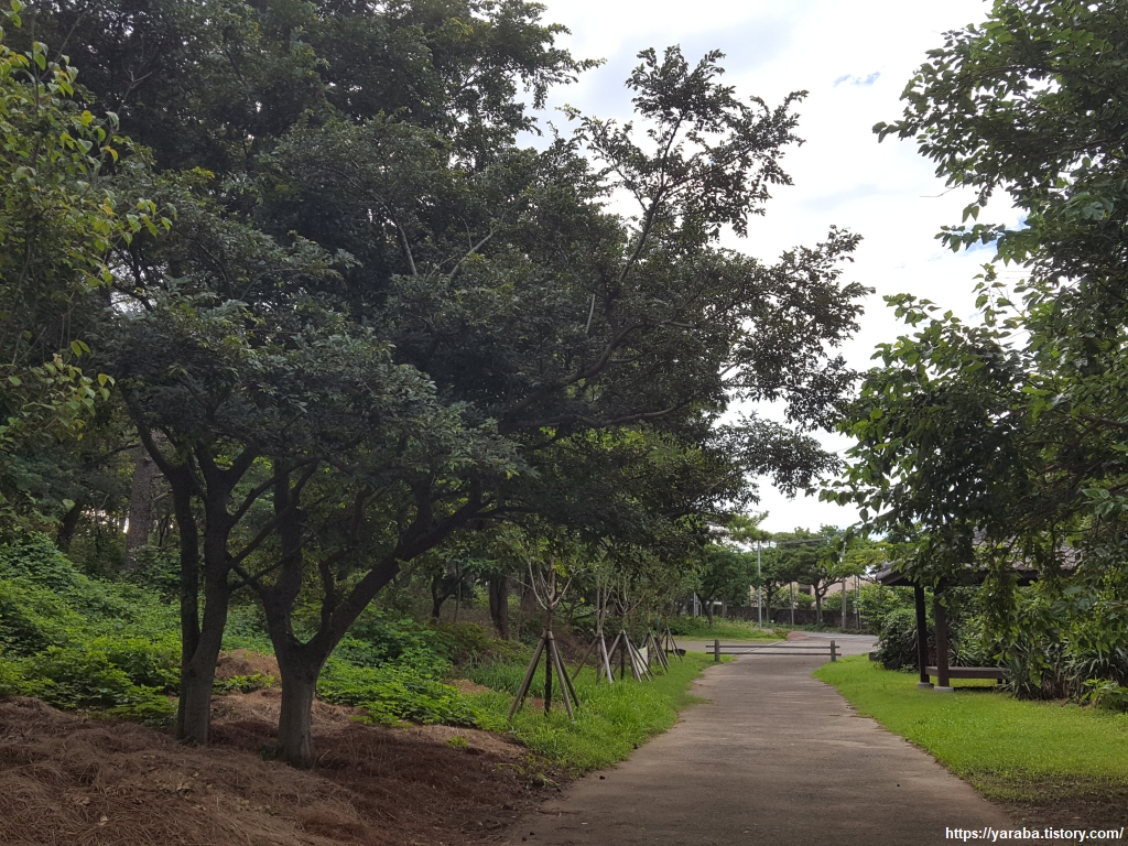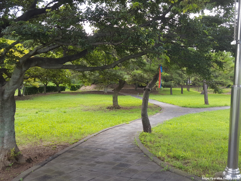물 건너온 야자 매트가 깔린 깔끔한 산책로를 걷는다. 그런데 푹신한 야자 매트가 물 먹으면 미끄럽다는 것을 생각하지 못하고 흥얼거리며 걷다가 내리막 길에서 그만 꽈당하고 말았다. 발목이 다치지 않아서 정말 다행이었다. 여행 초반 이후 여정에서도 조심하라는 조물주의 적절한 경고였다.