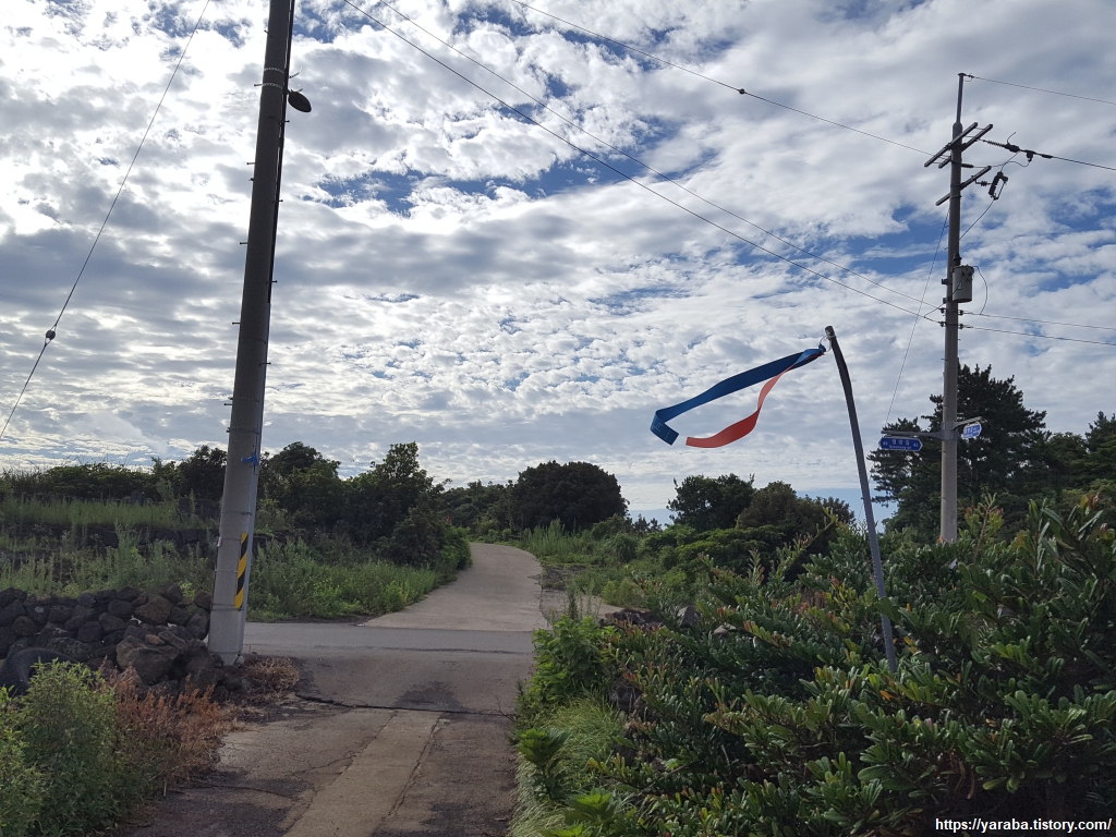 낯물 밭길의 들풀, 돌담, 바람, 바람에 나부끼는 올레 리본, 강렬한 태양과 푸른 하늘을 배경으로 하늘을 가득 채운 흰 구름은 그야말로 아름다운 풍경화 그 자체이다.