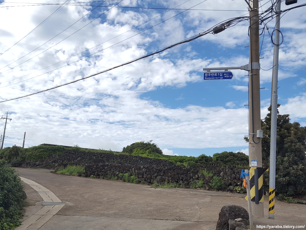 처음 "문주란로 1길"이라는 표지판을 만났을 때는 빈약한 상식으로 가수 문주란을 떠올렸었다. 가수 문주란의 노래는 잘 모르지만 어린 시절 여러 번 들었던 이름인 까닭이었을 것이다. 사실 가수 문주란은 부산 출신으로 제주와는 특별한 인연은 없는 것으로 보인다. 길 이름에 문주란이 들어간 까닭은 천연기념물 19호로 지정되어 있는 인근의 토끼섬 문주란 자생지 때문이다. 문주란이라는 이름은 "아름다운 구슬처럼 생긴 난초"이지만 난초과가 아니라 수선화과의 여러해살이풀이다. 따뜻한 곳에 사는 식물로 토끼섬은 문주란이 자생할 수 있는 북방 한계라고 한다.