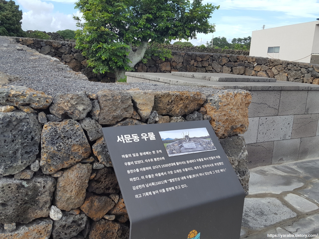 별방진 내에 있던 서문동 우물 자리. 지금이야 제주도 물이 육지로 판매되고 있는 상황이니 제주도에서 물이 부족하다고 느끼기 어렵지만 옛날에는 빗물이 모인 봉천수와 지하수가 지표면을 뚫고 솟아나는 용천수를 식수로 사용하다가 우물을 팠다고 한다. 그렇지만, 해안에서 가깝고 지표에서 깊게 들어가지 못하므로 물은 짠맛이 날 수밖에 없었을 것이다. 현재 제주도의 상수도는 지하수나 저수지 등 다양한 취수원의 물을 끌어올려 정수장을 거쳐 일반 가정으로 공급하고 있다고 한다. 다른 지역도 그렇지만 누수가 문제인데 다른 지역과 달리 암석 지대가 많다 보니 누수가 발생해도 땅속으로 스며들어가 누수를 찾기 어려운 문제가 있다고 한다.