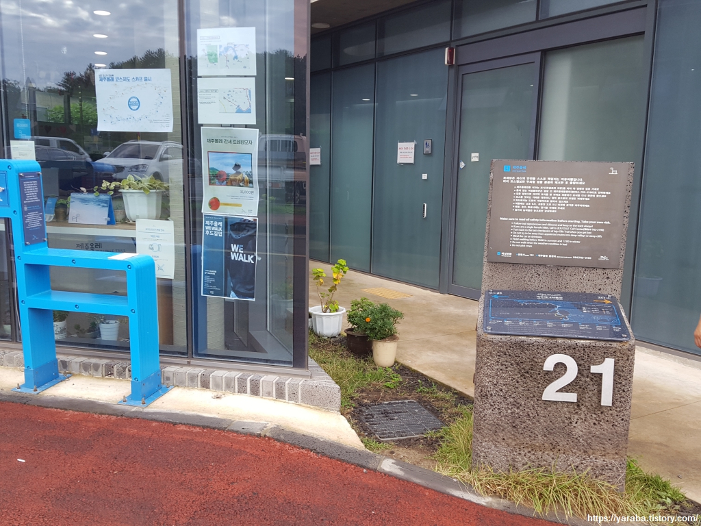 올레 21코스는 제주 해녀 항일 운동 기념 공원에서 시작한다. 올레 공식 안내소에는 이른 아침부터 관리하는 분이 나오셔서 올레꾼들을 맞이할 준비를 하고 계셨다.