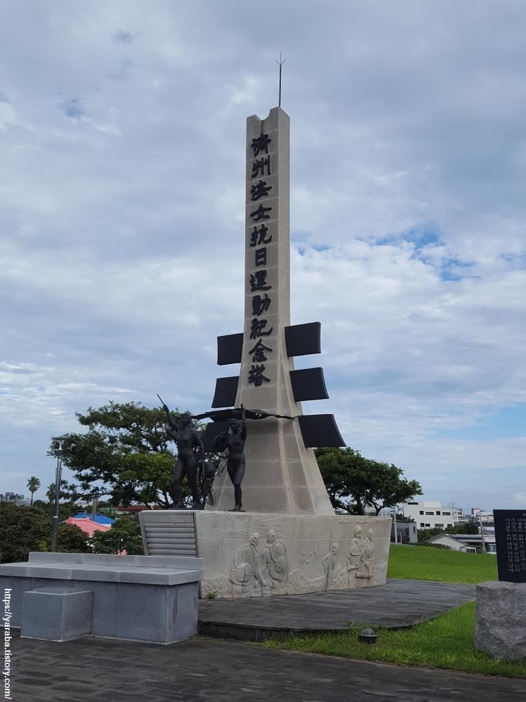제주 해녀 항일 운동 기념 공원의 나무에 달린 올레 리본을 따라 길을 시작하다가 잠시 기념탑에 다녀온다. 제주 해녀들의 항일 운동은 국내 최대의 여성 항일 운동으로 평가되고 있다고 한다. 이를 기리기 위해 위한 기념탑이다.
