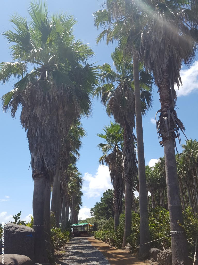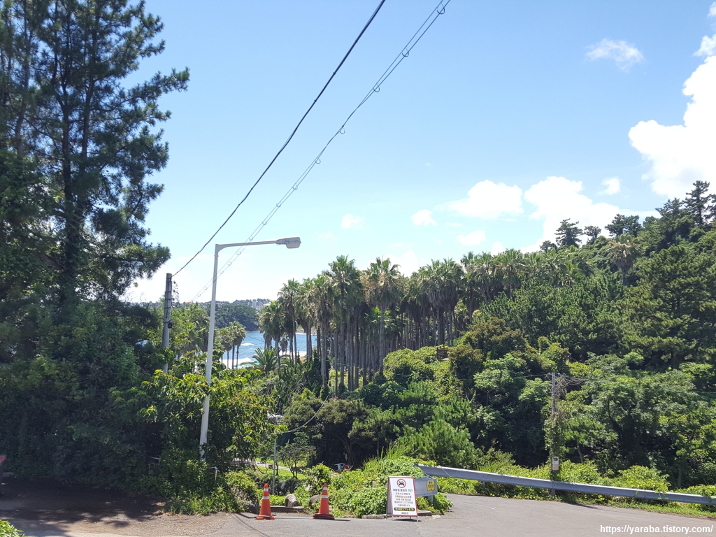 사람들로 시끌벅적했던 속골 유원지를 뒤로하고 거대한 야자수 동산 길을 따라 길을 이어간다.