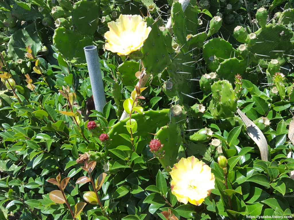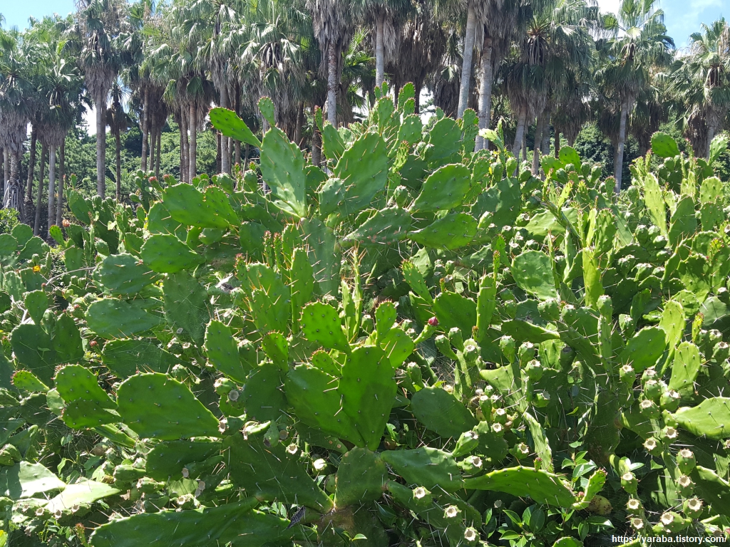 백년초 군락지를 만났다. 지금 한창 꽃을 피우고 열매를 맺는 시기인 모양이다. "백가지의 병을 고쳐주고 백 년까지 살 수 있게 한다"라고 붙여진 백년초라는 이름답게 제주의 선조들은 다양한 증상에 백년초를 민간요법으로 활용했다고 한다.