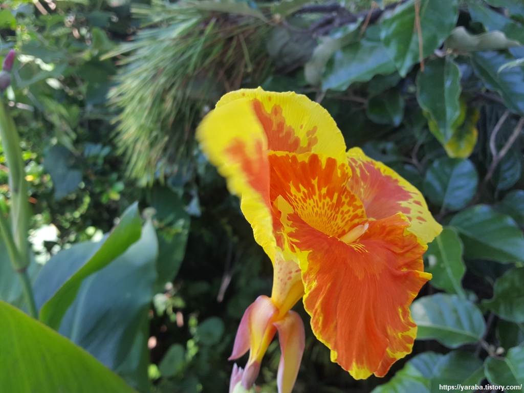 칸나는 열대 아시아가 원산지인 여러해살이 풀로 여름부터 가을까지 개화 기간이 길어 화단에 많이 심는 식물이다. 제주에서는 노지 월동이 가능하지만 육지에서는 가을에 캐서 저장했다가 봄에 다시 심어야 한다.
