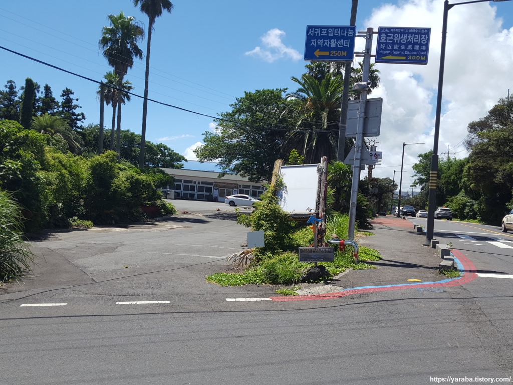 서귀포 여고 버스 정류장에서 버스를 하차하여 학교 앞을 지나 호근 위생 처리장 방면으로 좌회전하여 숙골 방면으로 이동한다. 호근 위생 처리장은 서귀포시 12개 동에서 발생하는 분뇨와 정화조 오니를 처리하여 슬러지를 퇴비화 시설의 부재료로 공급하고 폐수는 색달 하수 처리장과 연계 처리하여 바다로 내보내는 것은 없다고 한다.