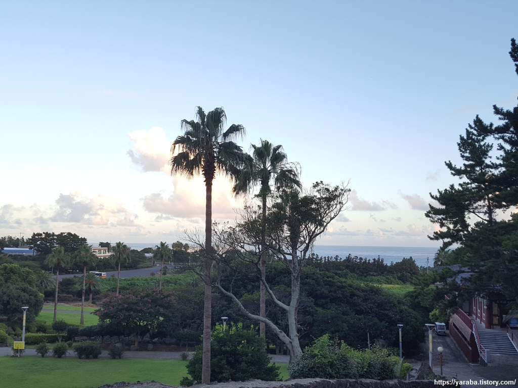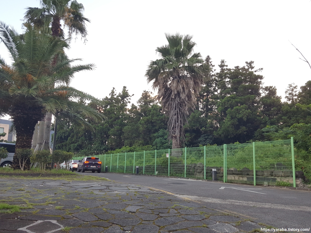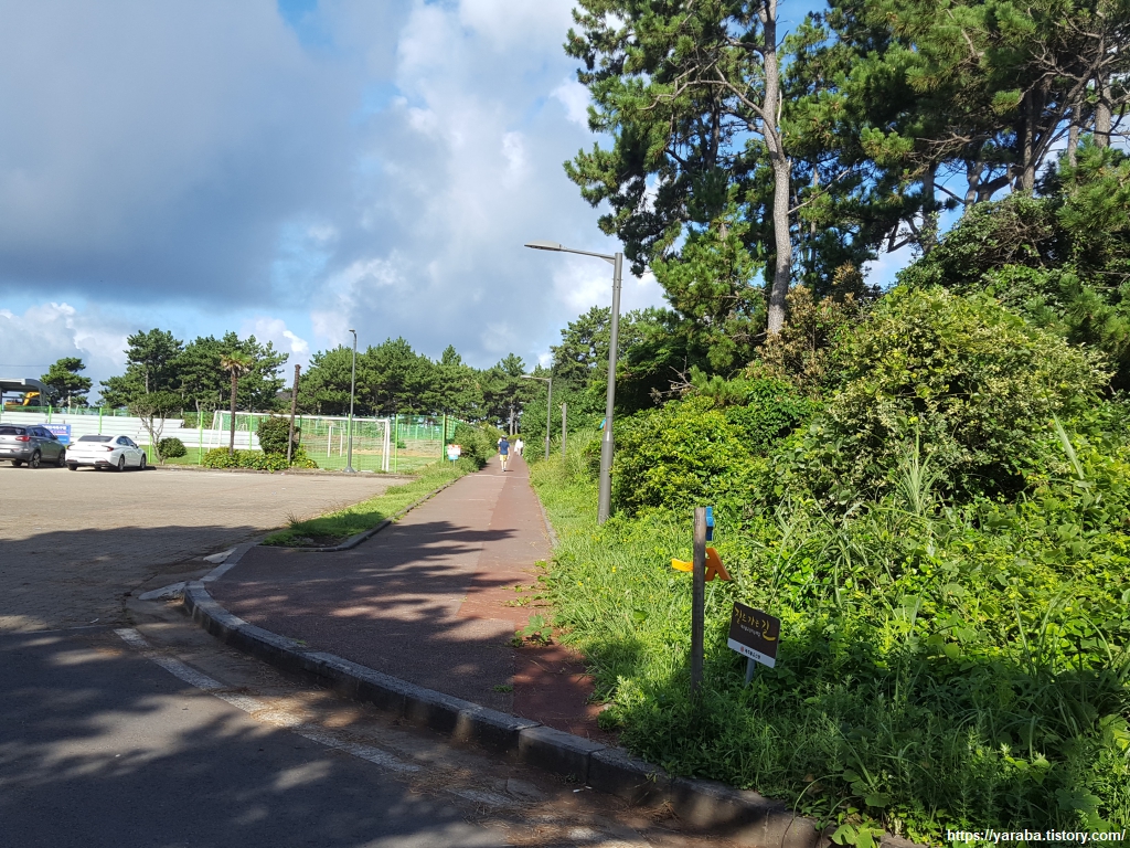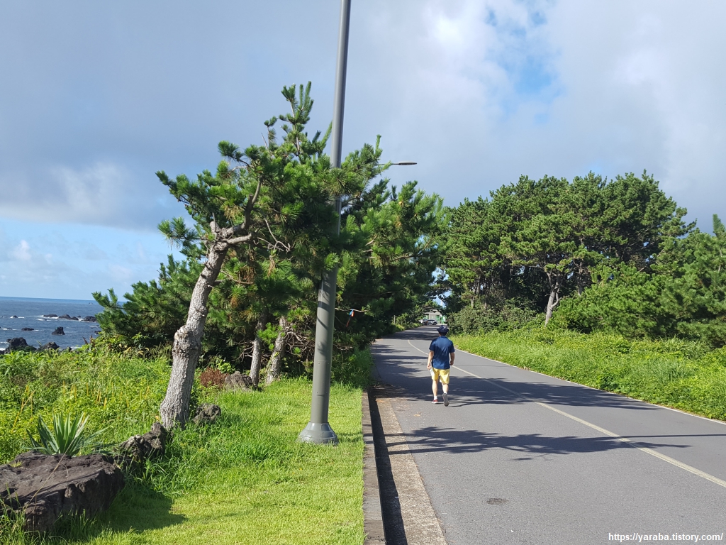 해변을 따라 이어진 도로를 따라 중문 단지 축구장으로 향한다.