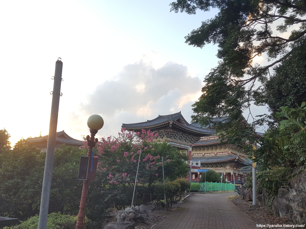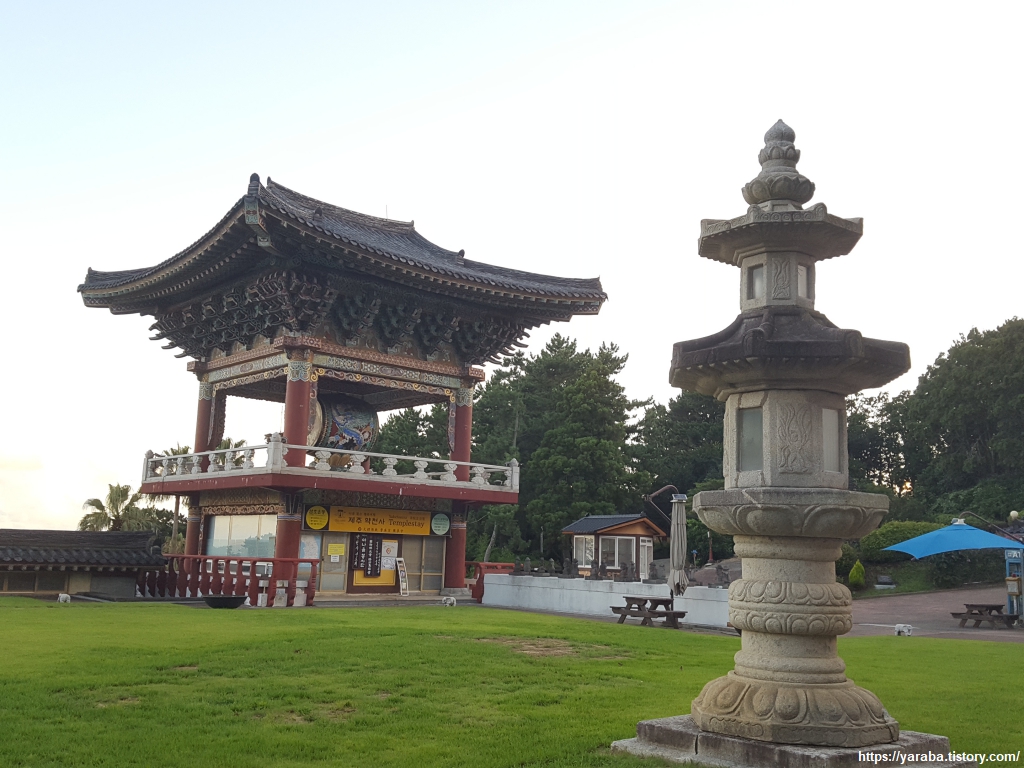 리조트 끝자락으로 이동하여 숲길을 지나면 리조트와 바로 붙어 있는 약천사 경내로 들어갈 수 있다.