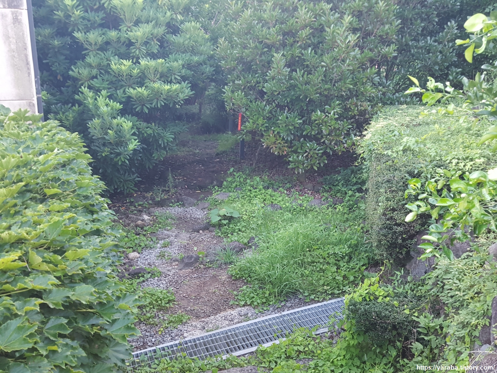 약천사 주차장 구석으로 이어진 길을 따라 내려가면 대포동 마을길로 이어진다.