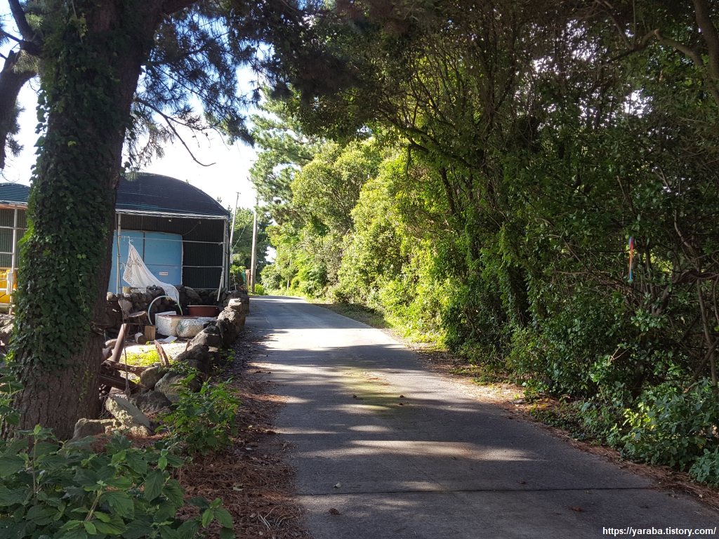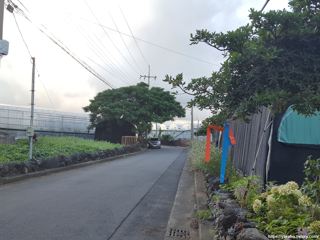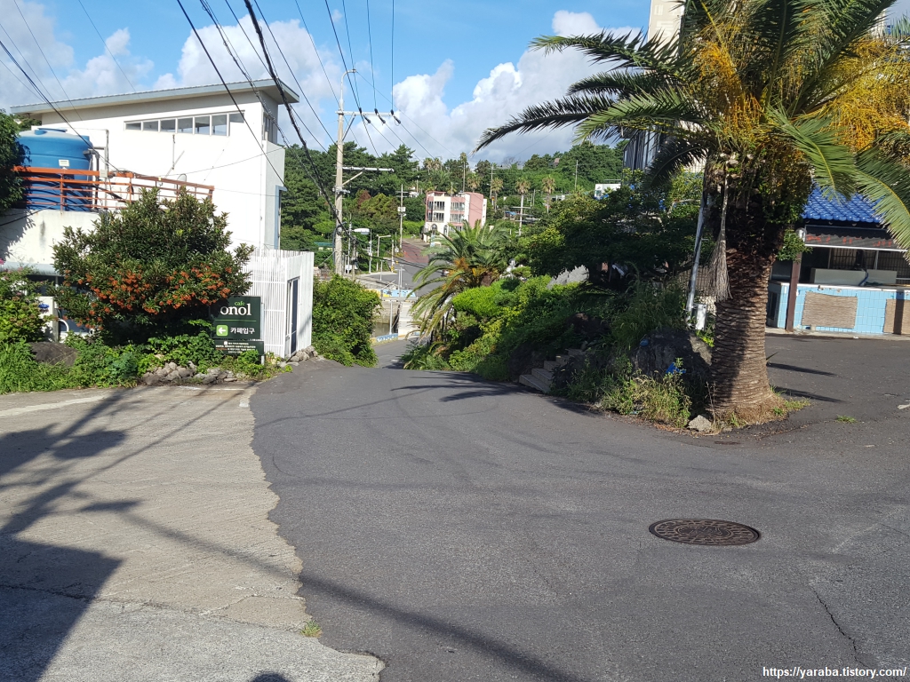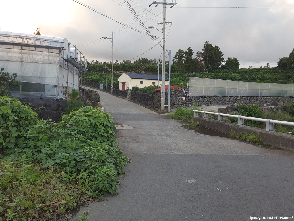 지는 태양이 끝까지 강렬함을 내뿜지만 이제는 구름에 가리고 오름에 가려서 얼굴까지는 도달하지 못한다. 서귀포시 월평동에서 하원동으로 넘어가 마을길을 걷는다.