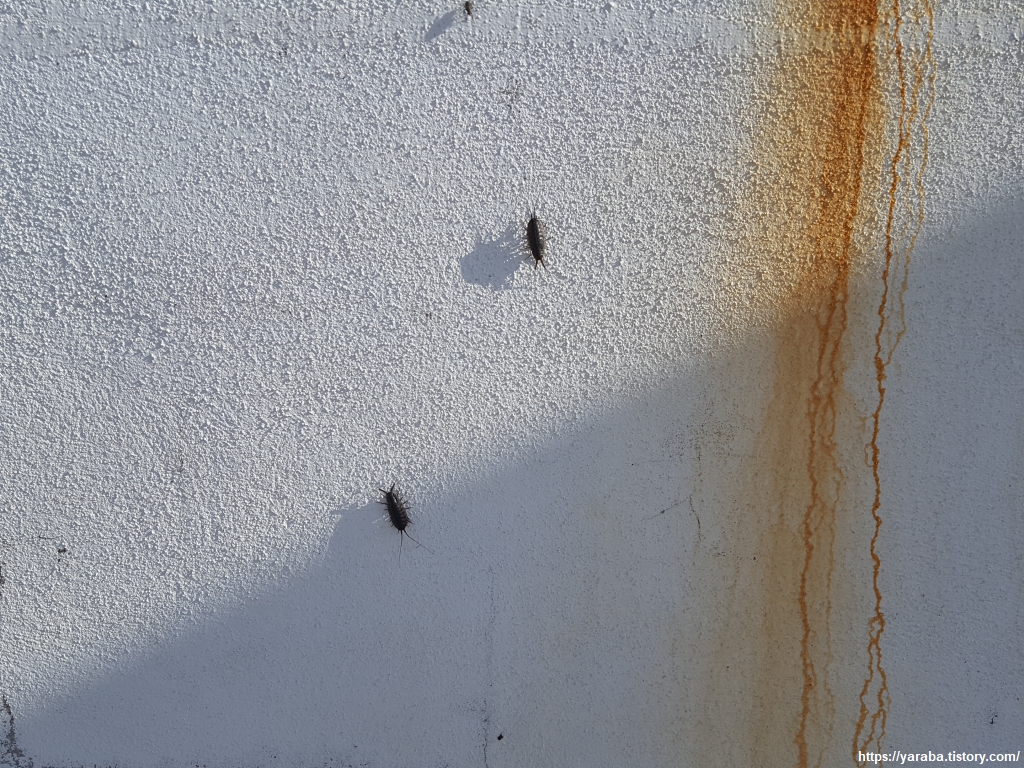 해안가 건물 벽에 있는 갯강구들이 인기척을 느끼고는 도망치려고 우왕좌왕하고 있다. 강구는 바퀴벌레를 의미하는 경상도 사투리로 바다 바퀴벌레라는 의미이지만 갯강구는 바퀴벌레와 같은 곤충이 아니고 갑각류이다. 가까운 사촌이라면 쥐며느리나 콩벌레를 들 수 있다. 모두 청소부 역할을 하는 생물로 갯강구는 바다에 떠밀려온 물고기의 사체나 기타 쓰레기를 먹고 산다. 바닷가 축축한 곳에 무리 지어 산다. 사람에게 혐오감을 주는 것 말고는 피해 주는 일은 없다. 땅에서는 새들이 잡아먹고 물에 빠지면 물고기가 잡아먹기 때문에 해변가 올레길을 걷다 보면 인기척을 느끼고 쏜살같이 도망가는 갯강구들을 쉽게 만날 수 있다. 낚시 미끼로 사용하기도 한다.