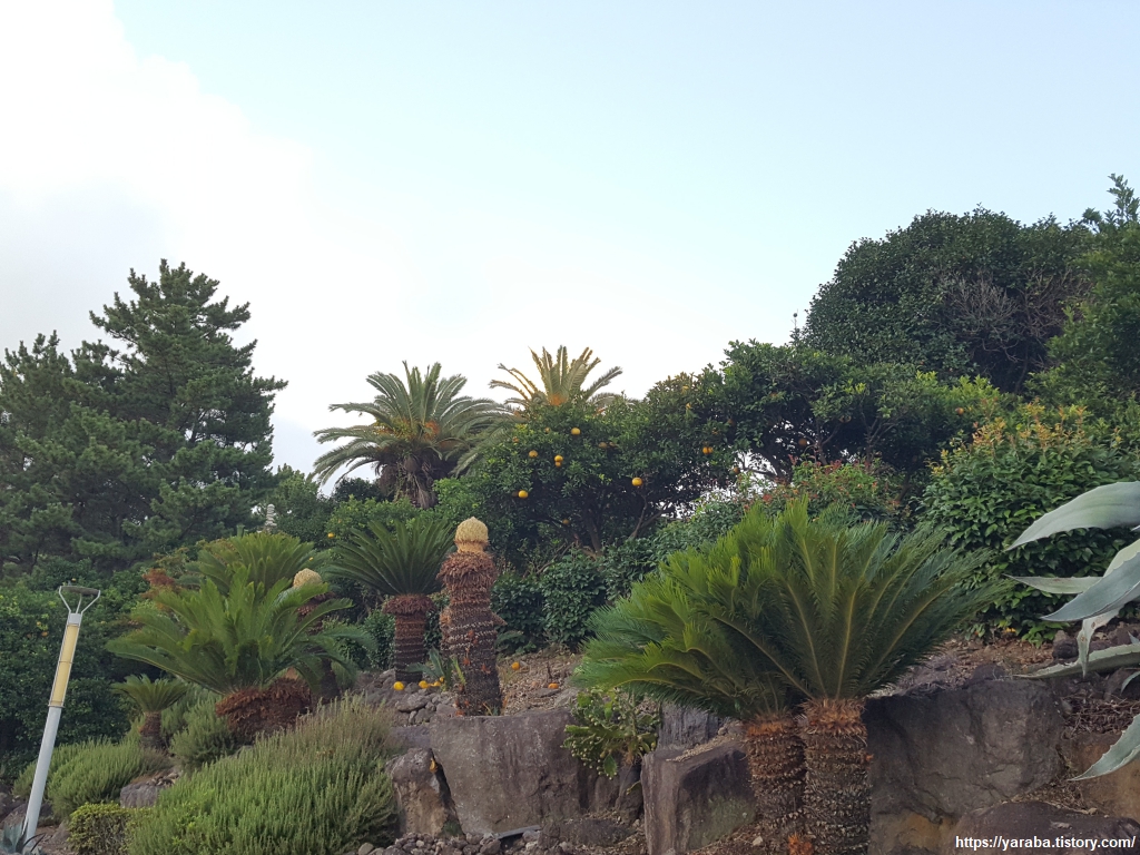 대포 포구를 지나 대포 연대로 가는 길에 한 농가에서 길에다 열린 가게를 차려 놓고 하귤을 1개에 1천원씩 팔고 있었다. 약천사 경내 나무 아래에 떨어져 있던 수많은 하귤은 손을 대지도 못했는데 이 아침 하귤을 맛보게 된다. 누군가는 자몽, 레몬, 한라봉이 섞인 맛이라고 하는데 단맛이 강하지는 않고 쓴맛이 조금 있지만 나름 먹을만했다. 땀이 줄줄 흐르는 날씨에 입안에 상쾌함을 더해 주었다. 청을 담가 먹기도 하고 속살을 가지고 음료수를 만들어 먹기도 한다고 한다.