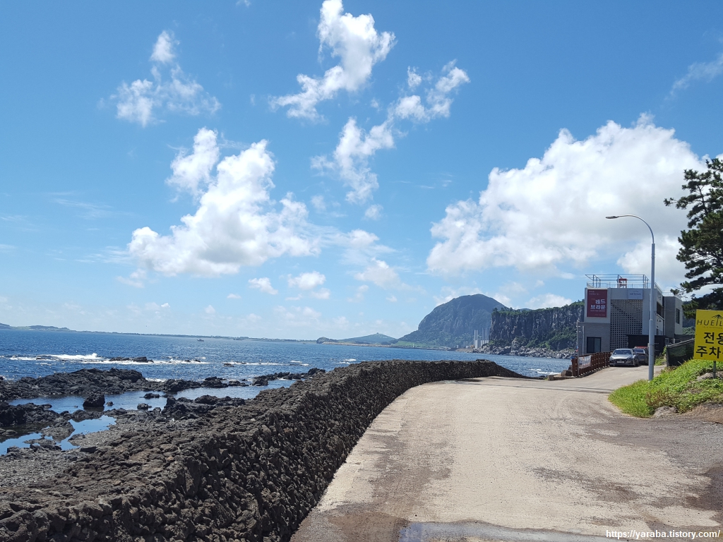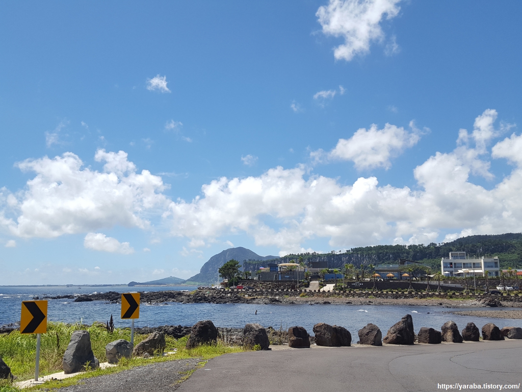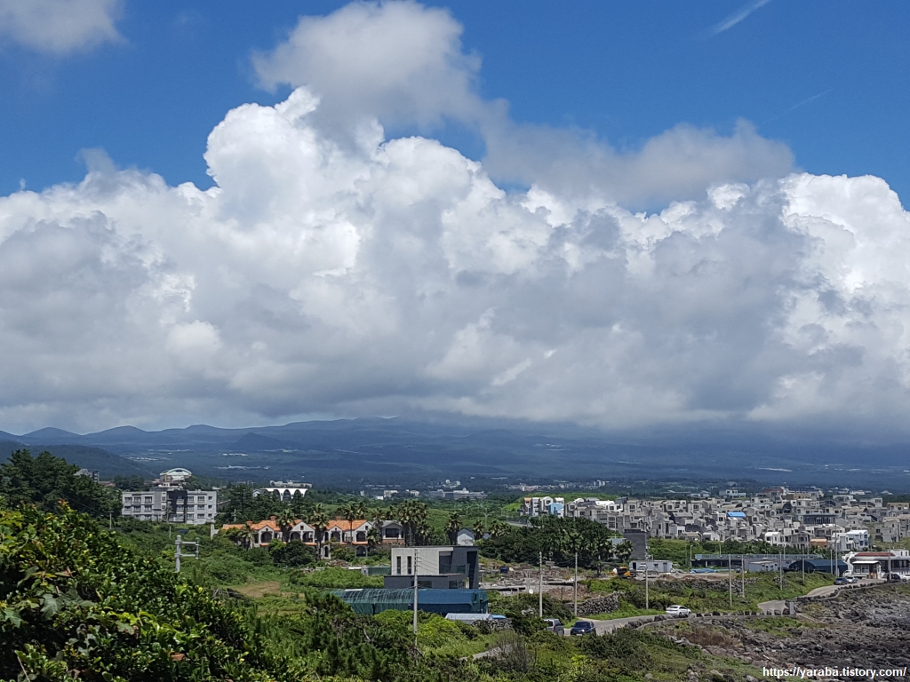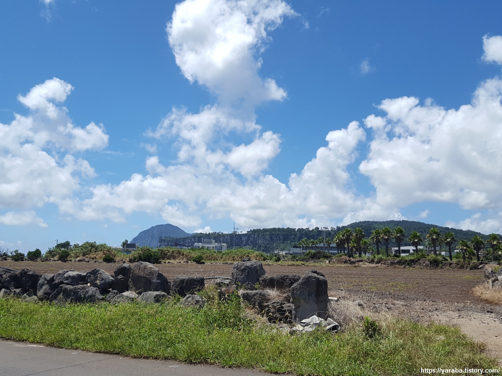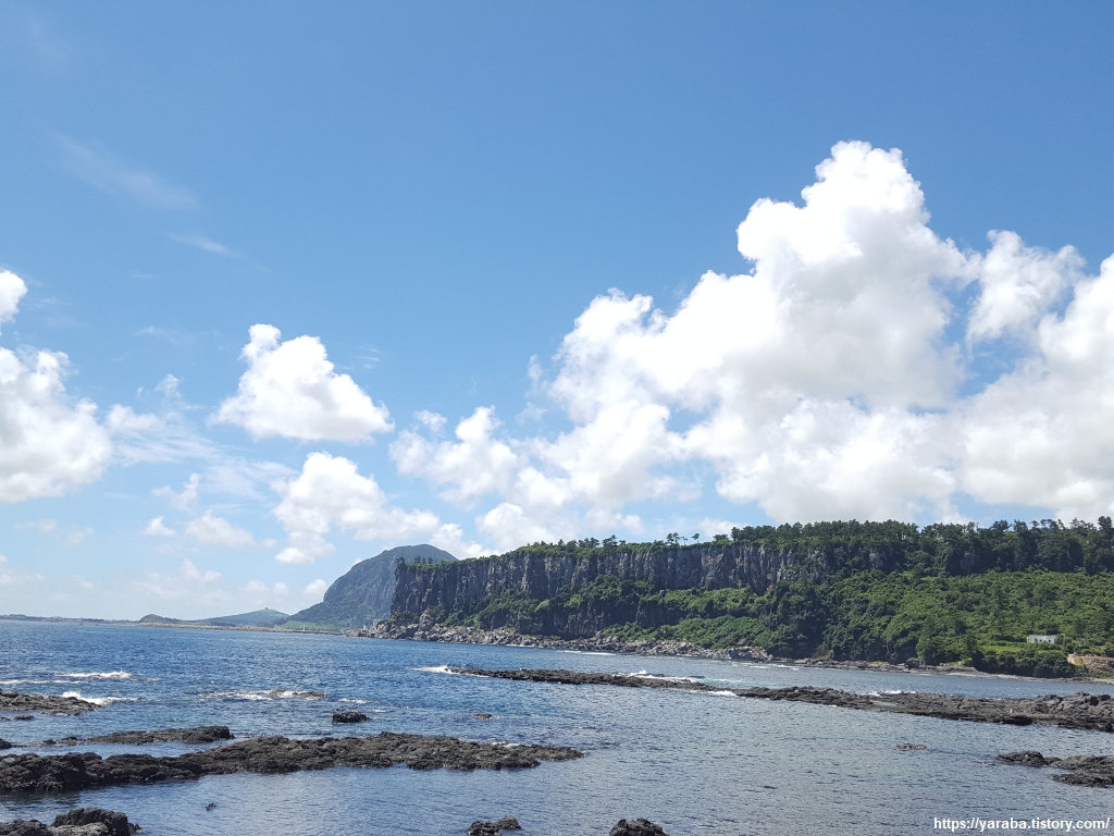 멀리 뾰족하게 솟은 산방산과 박수기정도 눈에 들어오기 시작한다.
