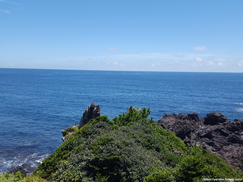 하예 포구를 지나 다시 해안길을 따라 걷는다. 현무암 해변과 수평선을 바라보며 걷는 길이다.