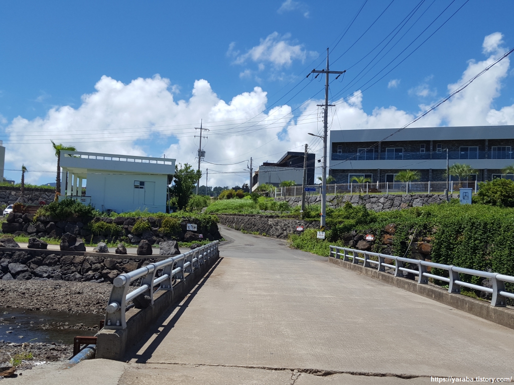 대동천을 건너면 서귀포시 예래동에서 안덕면 창천리로 넘어간다. 다리를 건너 바로 좌회전하여 길을 이어간다. 올레길 8코스 끝자락 발걸음이 무겁다.