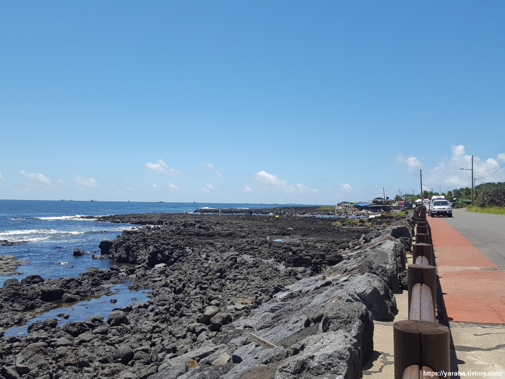 검은 현무암 해변을 따라 예래 해안로 도로를 따라 논짓물과 하예 포구를 향해서 이동한다.
