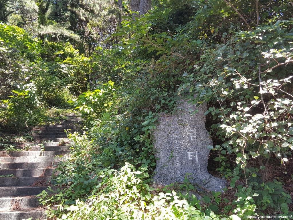 길을 가다 보면 하예 포구로 내려가는 길이 있지만 올레길은 예래 해안로를 따라 언덕길을 넘는다. 동난드르 쉼터 입구에는 수도가 있어서 땀으로 퉁퉁 불은 손을 잠시 씻을 수 있었다. 쉼터에 오르면 주변 풍경을 감상할 수 있다고 하는데 오를 힘은 없었다. 사람이 없으니 나무 그늘인 계단에 걸터앉아 잠시 휴식을 취하고 길을 이어간다. 난드르는 마을에서 멀리 떨어진 넓은 들판을 의미하는 제주 방언이다.