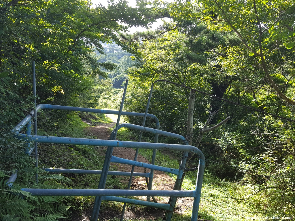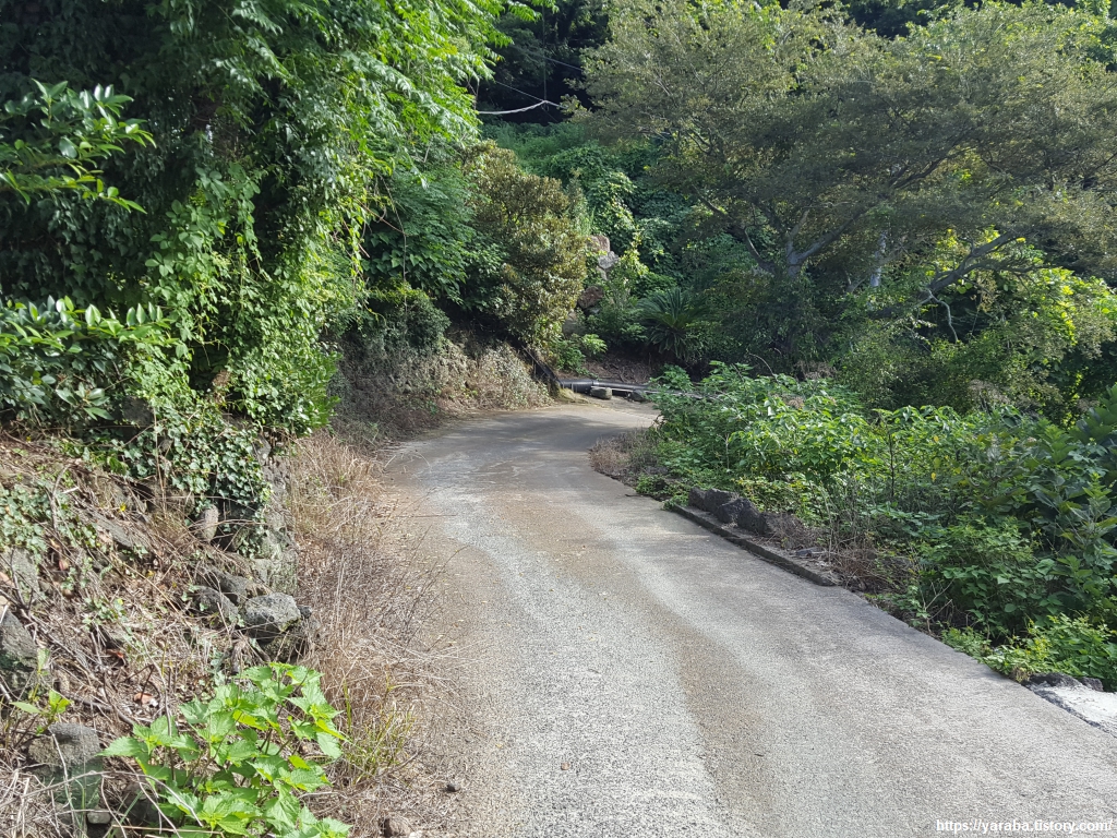 산 중턱에 있던 울타리와 쌍이 되는 출입구를 지나면 이제 방목 중인 소나 말과 만날 염려로부터는 해방이다. 이제 마을길을 따라서 안덕 계곡에서 내려오는 창고천 방향으로 이동한다.