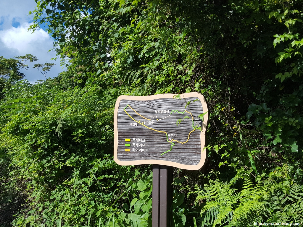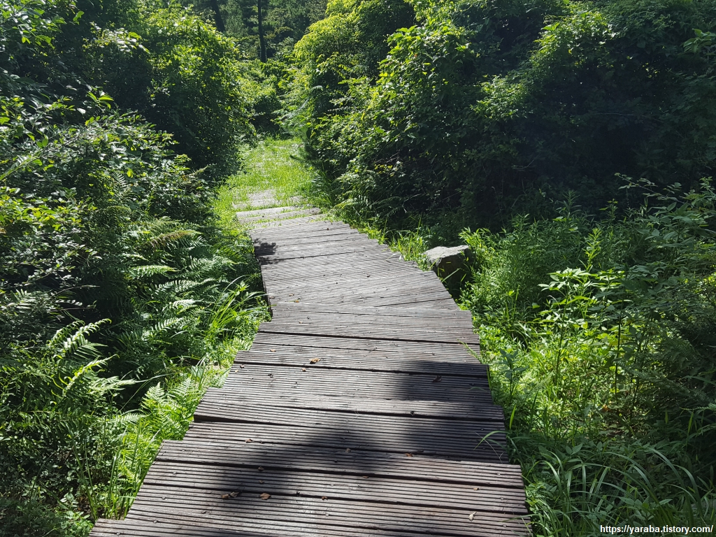 나무 데크를 따라 내려가는 길, 이제는 내려가는 일만 남았구나 하는 안도감이 가슴을 채운다. 거리는 짧지만 어려운 코스라고 해서 나름 긴장했는데 옆지기가 힘들어하는 것을 제외하면 수월하게 지나왔다. 몸은 무겁지만 발걸음은 가볍다.