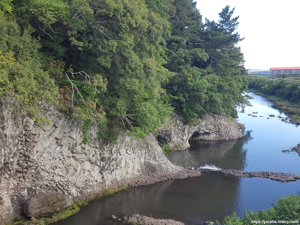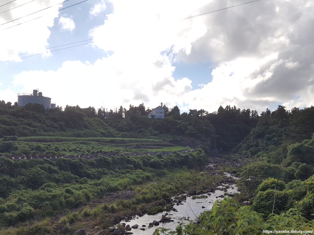 개끄리민교에서 바라본 창고천의 모습이다. 한대오름, 삼 형제 오름 일대에서 발원하여 안덕 계곡을 지나 이곳까지 내려온 창고천은 현재의 올레길 9코스가 군산에서 내려와 계속 함께 걷는 하천이다.