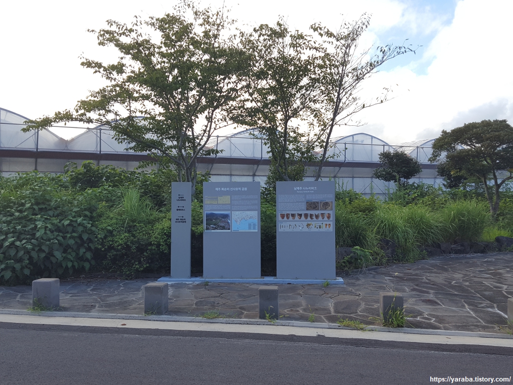 남제주 화력 발전소 앞을 가로질러 걷다 보면 제주 화순리 선사 유적 공원도 지난다. 2005년 발전소 3, 4호기를 건설하는 과정에서 움집터, 옹관묘 등이 발견되어 2년간 발굴 조사가 진행되었고 일부는 이전하여 전시하고 있는 곳이다. 기원전 2세기 이후의 철기 시대 유적이라고 한다.