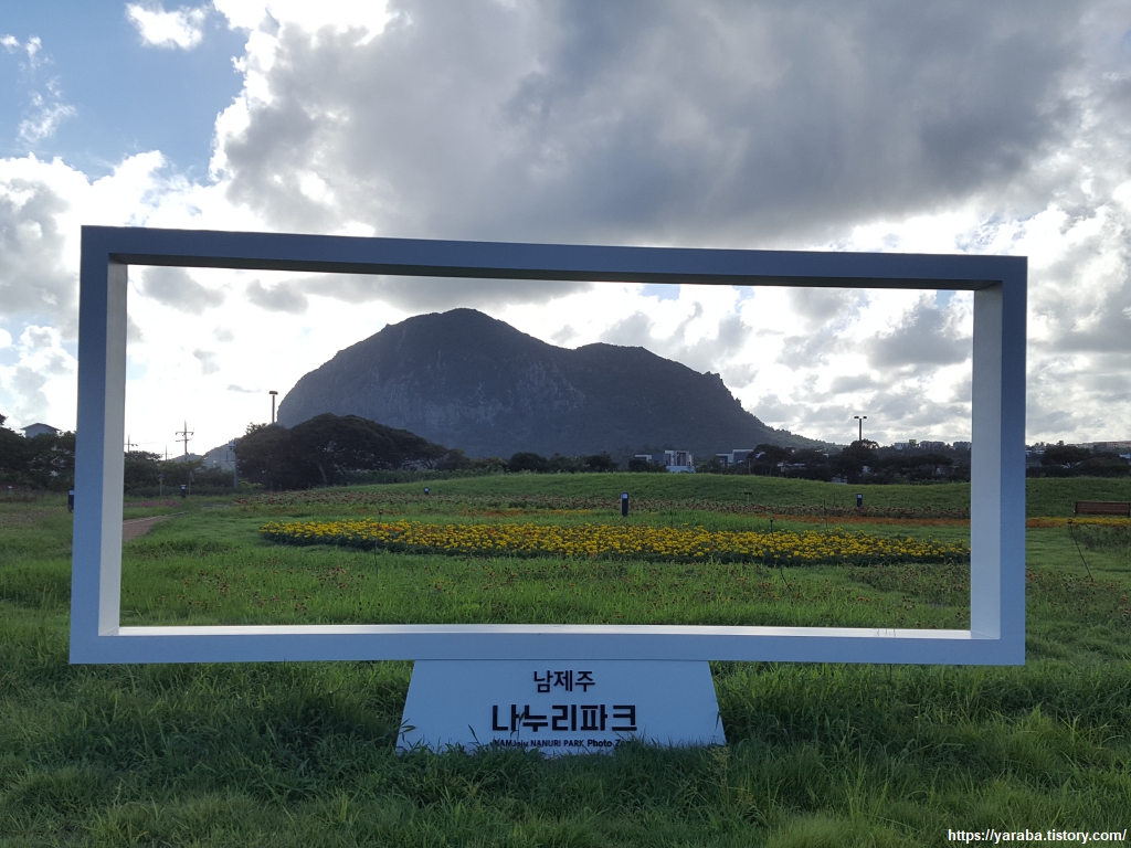 이 공원의 명품 뷰는 아마도 이곳이 아닌가 싶다. 사각형 틀 속에서 산방산을 담는 포토존이 일품이다.