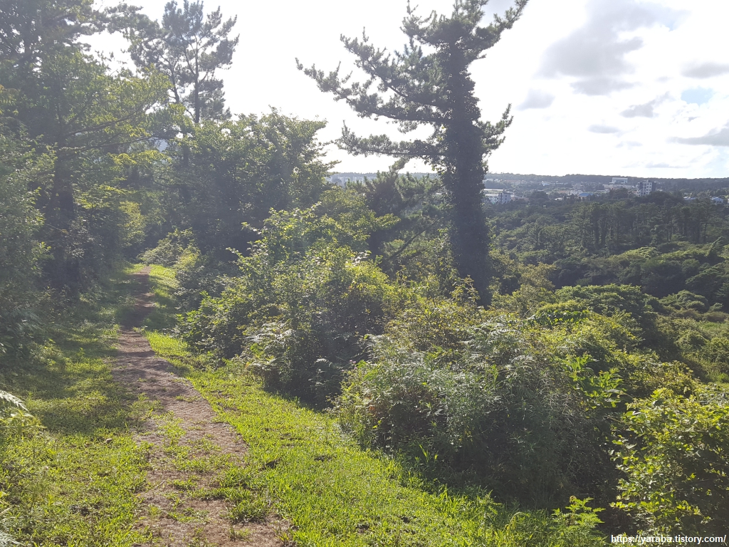 뷰포인트부터는 완만한 산 능선을 따라서 산 반대편 진지동굴과 월라봉 전망대가 있는 방향으로 이동한다.
