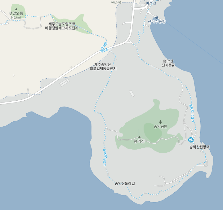 송악산 입구에서 길을 이어가는 올레길 10코스는 송악산 해안으로 한 바퀴 돌아 다시 송악산 입구로 나와서 섯알 오름으로 이동한다.