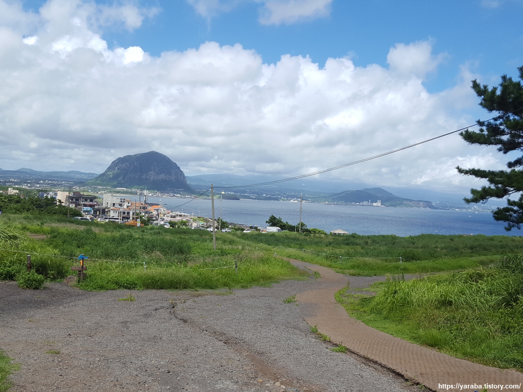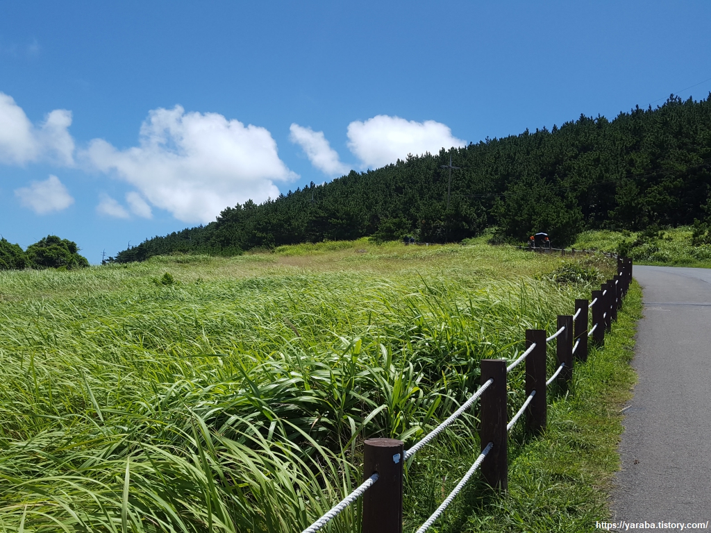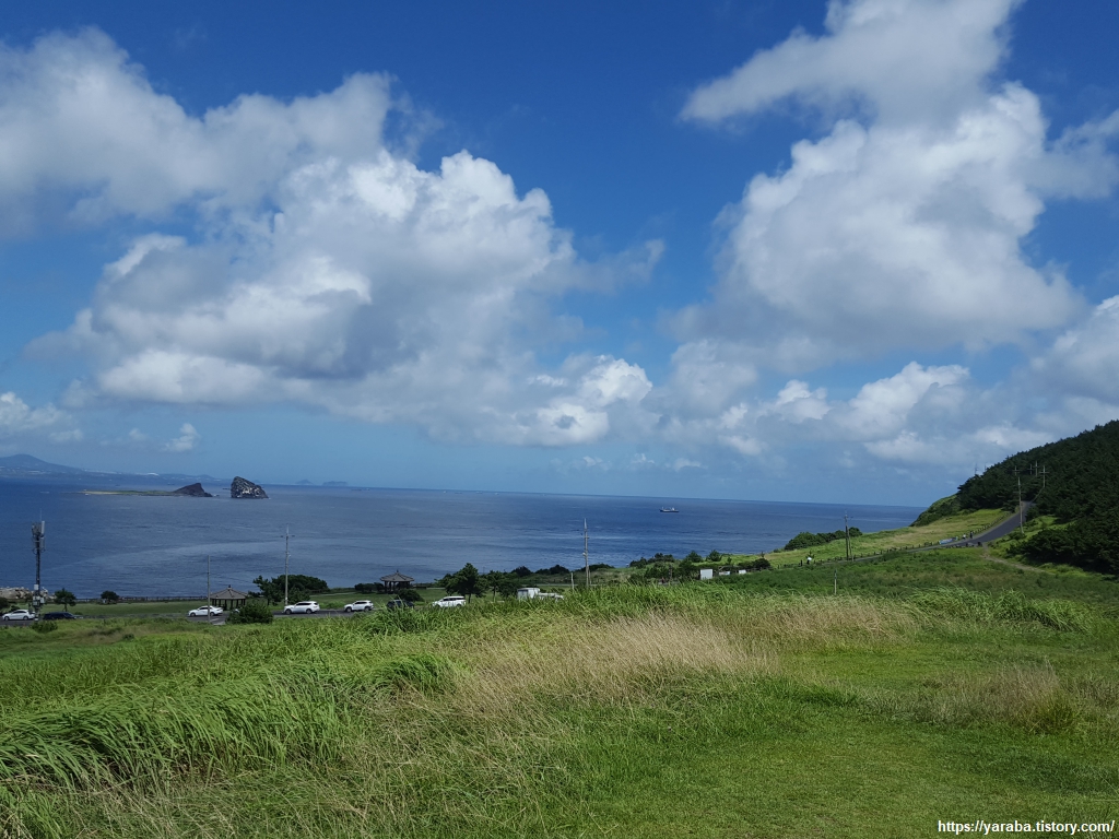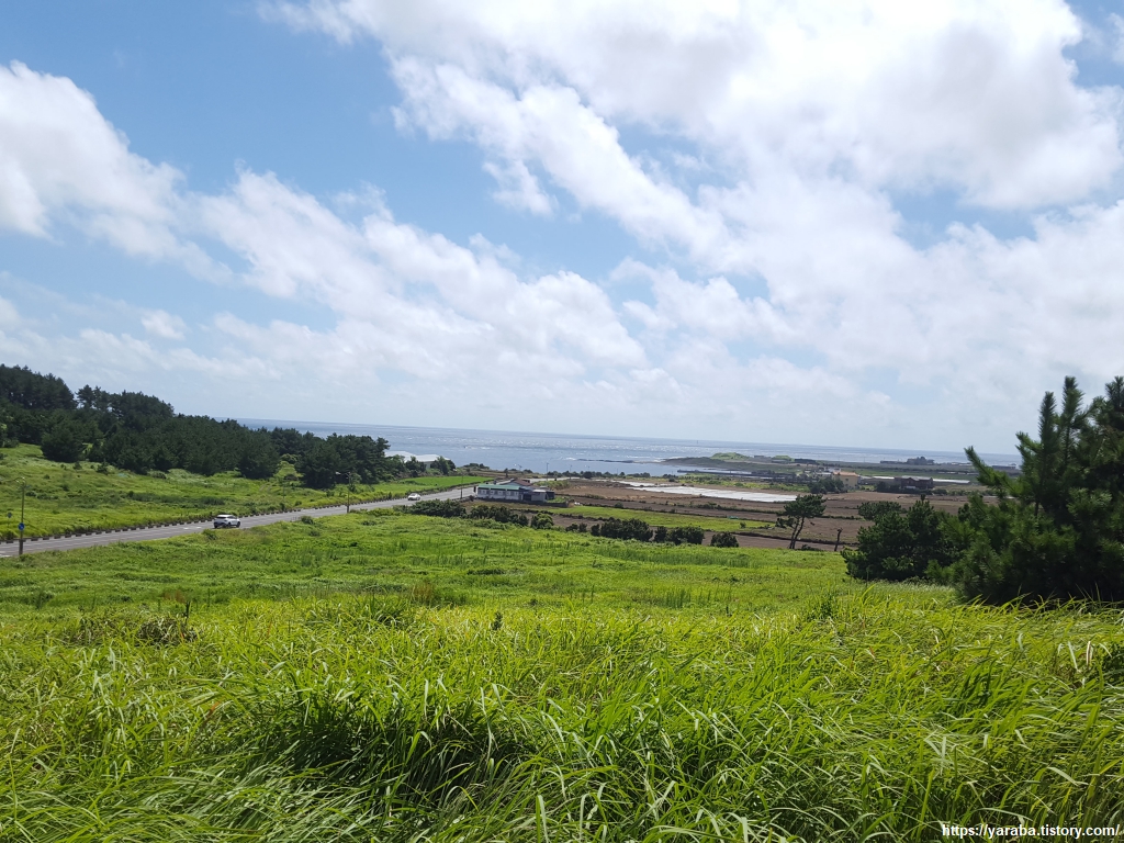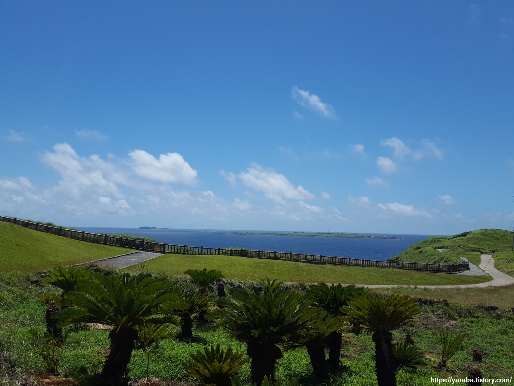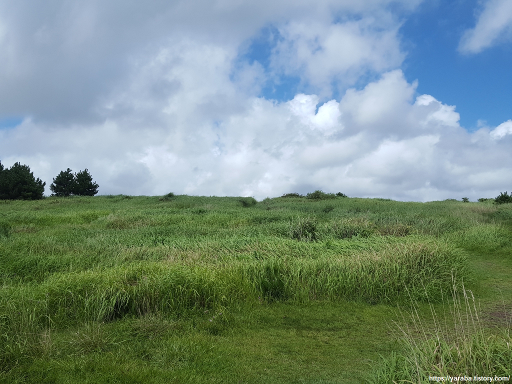 언덕에 올라 바라본 형제섬 방면의 전경과 송악산 너머 상모리, 하모리 방면의 전경 또한 아름답다. 푸른 풀밭과 흰구름이 주연이다.