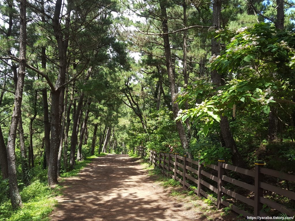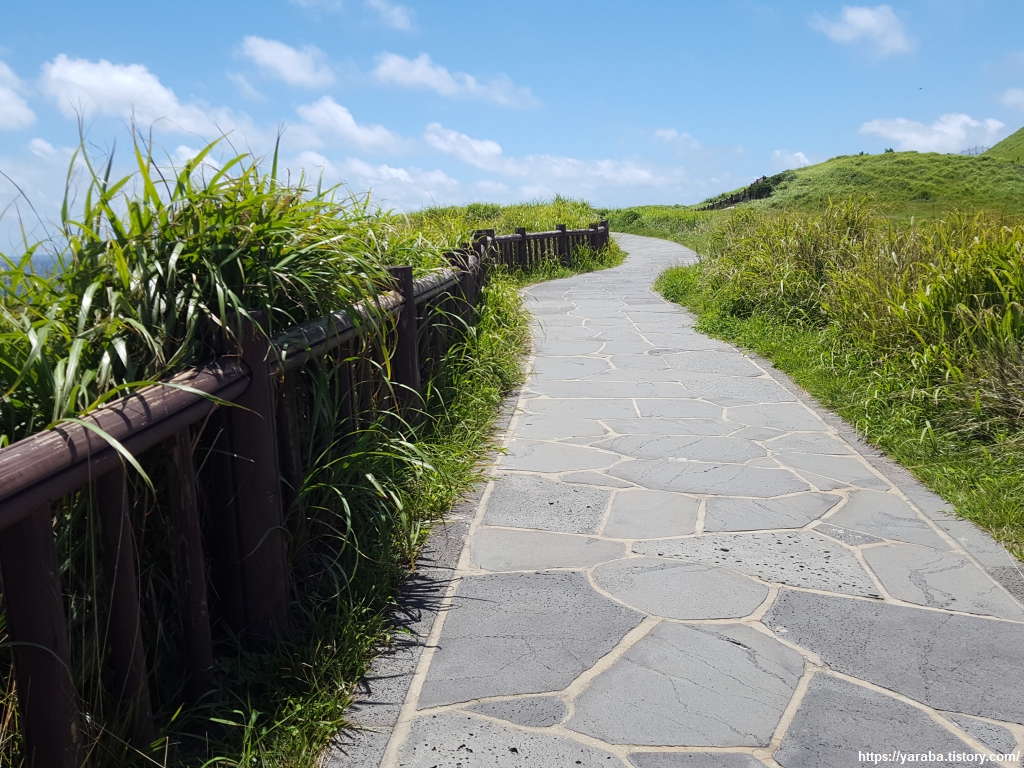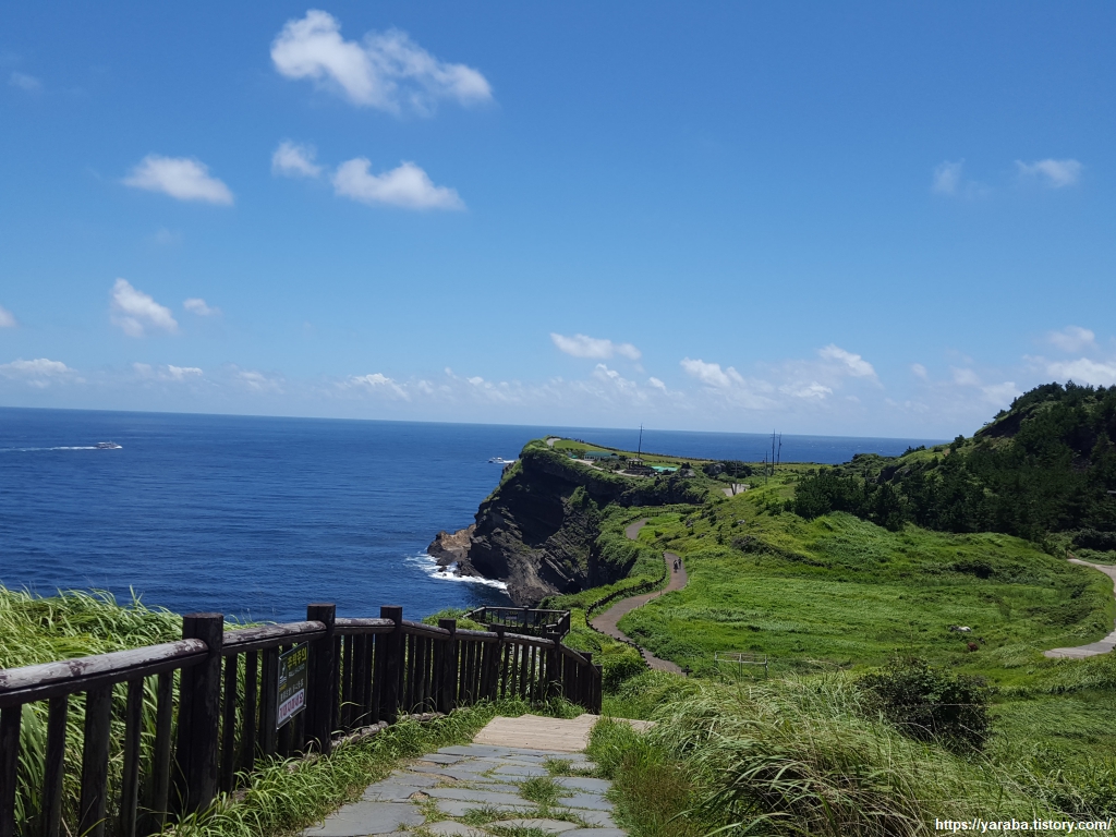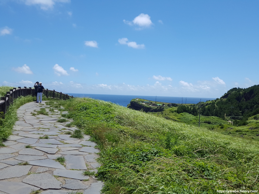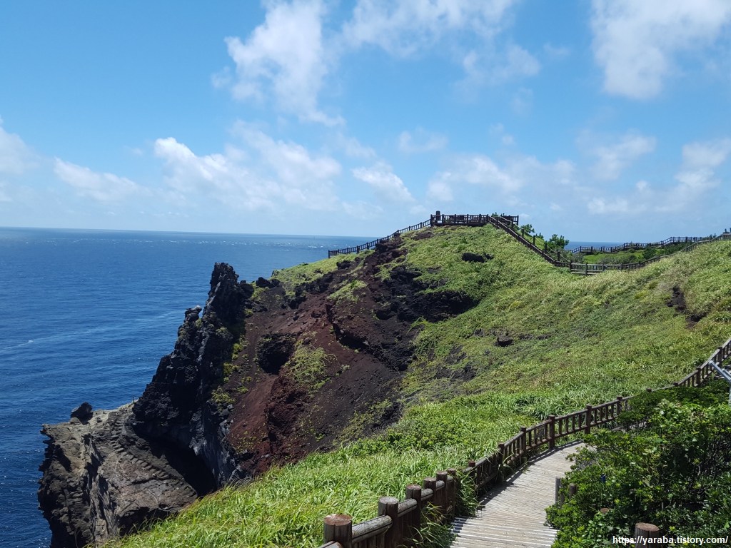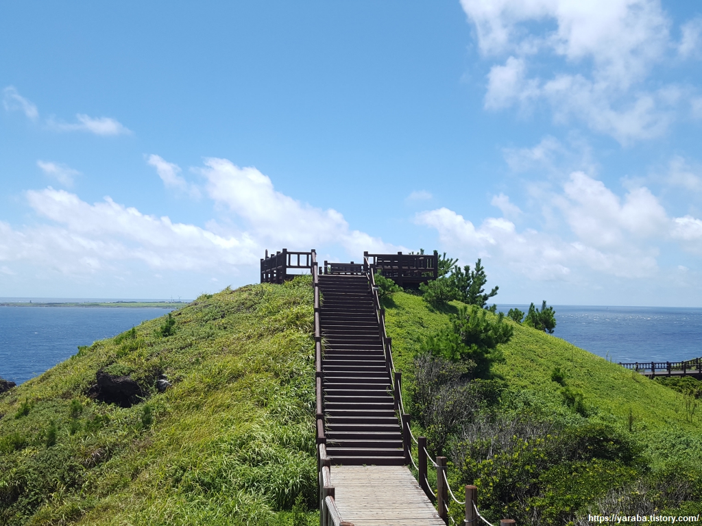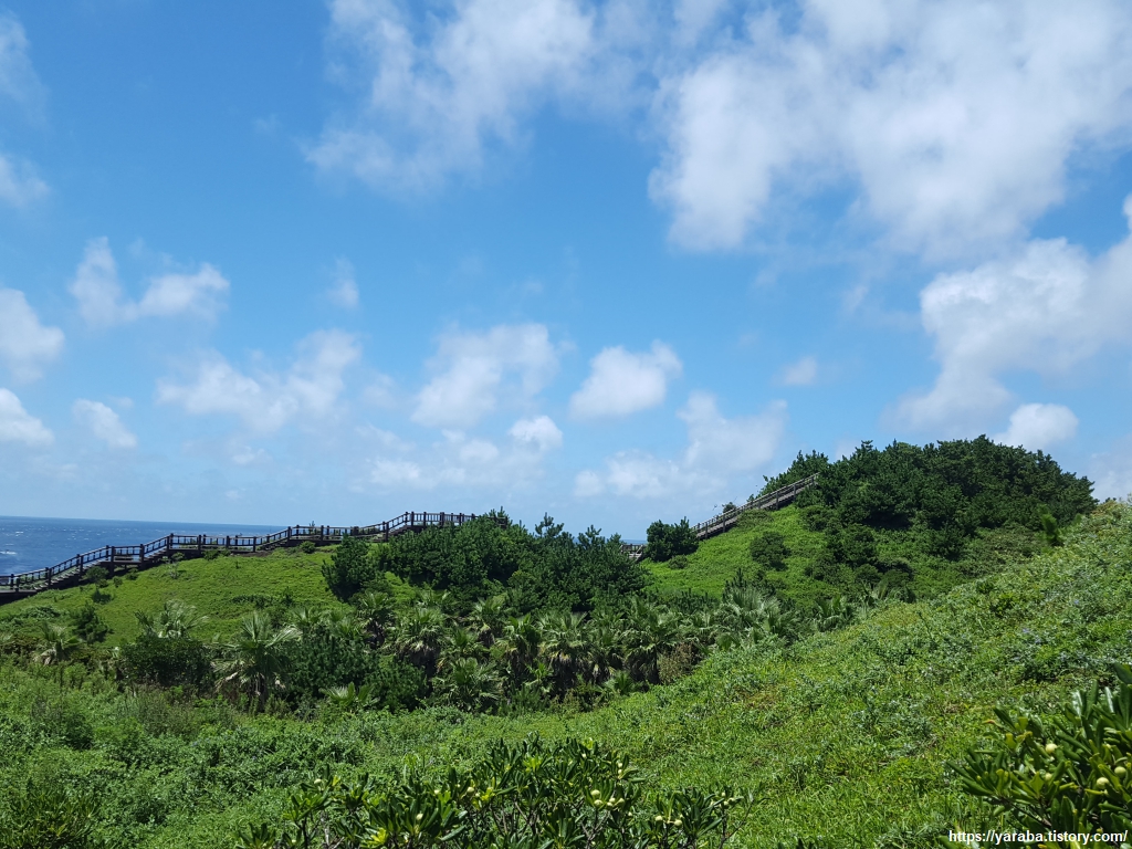 아름다운 해변을 감상하며 걷는 송악산 둘레길은 2.8Km에 이르는데 많은 사람들은 멀리 보이는 첫 번째 전망대까지만 가고 그 이후부터는 사람이 거의 없었다. 계단을 오르락내리락하며 걸어야 하는 결코 쉬운 길은 아니었다.
