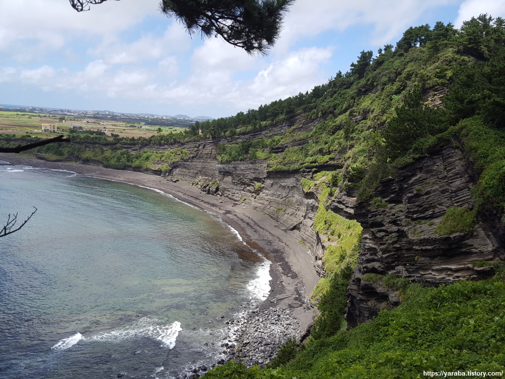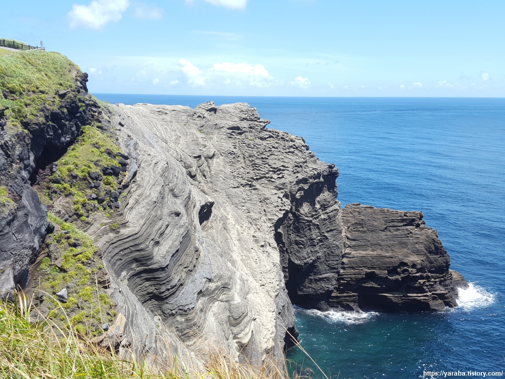 송악산 입구에 진지 동굴이 자리했던 절벽처럼 반대편도 거대한 응회암 지층이 그 나이테를 드러내며 자연의 위대함을 뽐내고 있다.